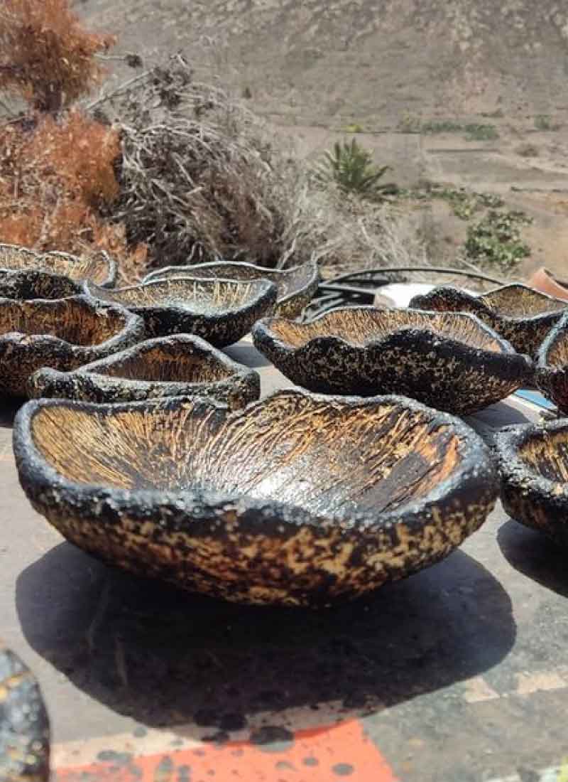 Cada cuenco es una obra de arte única que refleja la fuerza y la belleza de la naturaleza volcánica de Lanzarote.